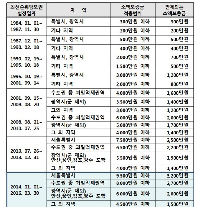 소액보증금 범위와 최우선 변제금 업데이트를 다시 했어요.