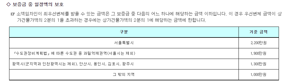 그리고 이에 따른 최우선 변제금은 다음과 같습니다.