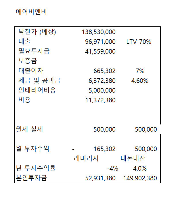 그럼 월세 수익률이 3~4% 정도 나온다고 보고 에어비앤비 수익성도 검토해볼까요?