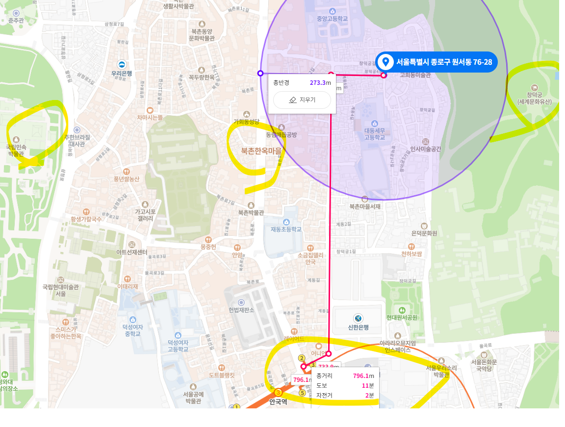 한국 문화를 담고 있는 곳이구나 사방이 우리나라를 느낄 수 있는 핫플레이스들이 모여 있어요.