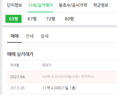 최근 실거래가를 보니 조금 놀랍네요. 13년전에 1건 있었는데 낙찰가보다 1억 싼 11억 4천이네요.