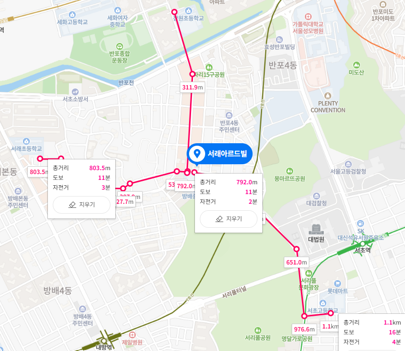 아이많은 대가족이 살기 괜찮은 곳인 것 같아요. 잠원초등학교 같은 경우는 큰길이 있으나 육교가 있어서 신호등을 건널 필요가 없고요. 중학교는 바로 코앞에 있고 고등학교는 걸어서 15분 거리니 자전거 타고 다녀도 될듯하네요.