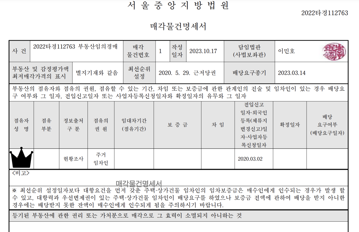 2)매각물건명세서