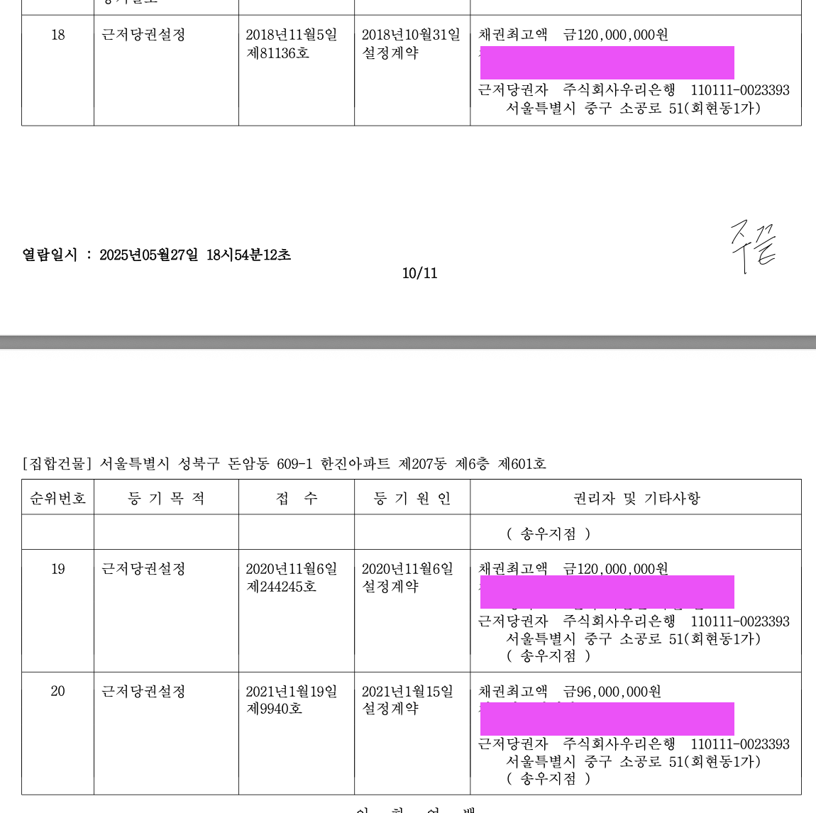 이 가격이 합리적인지 묻기 전에 5.7억이라는 낙찰금액이 옳은 선택인지 아닌지 확인해 보는 게 맞는 것 같습니다. 사실, 매각물건명세서에 임차인의 차임과 보증금이 미정이면 온라인으로 우선변제권을 가진 찐 임차인인지 아닌지는 확인이 불가합니다. 일단, 등기부 등본을 확인해야 합니다. 700원을 내고 등기부등본을 떼봤습니다.