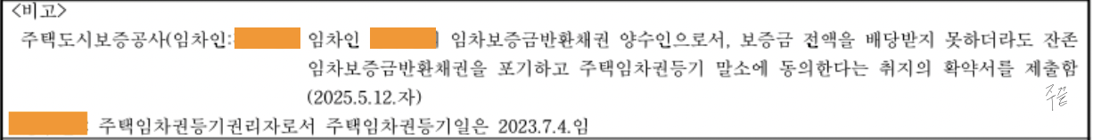 주택도시보증공사도 괜찮은 매물인 거 아니까 굳이 시간 오래 안 끌고 보증금 전액배당포기하고 낙찰받는 대로 주택임차권등기 말소에 동의한 것 같아요.